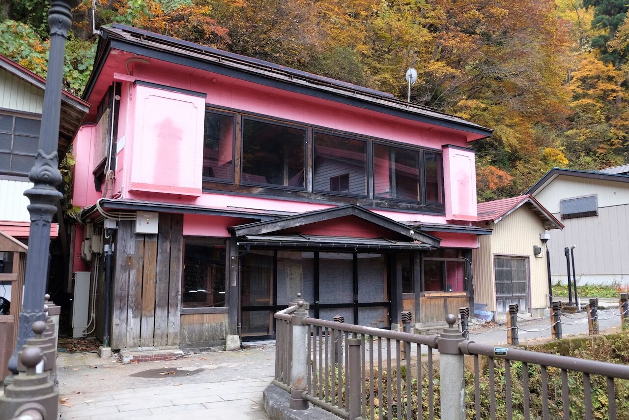 建築中の建物がありました、銀山温泉ではあまり見ない光景です、この奥でも改修中の旅館がありました、毎回行く度に状況が変化しますが、あれ?ここも