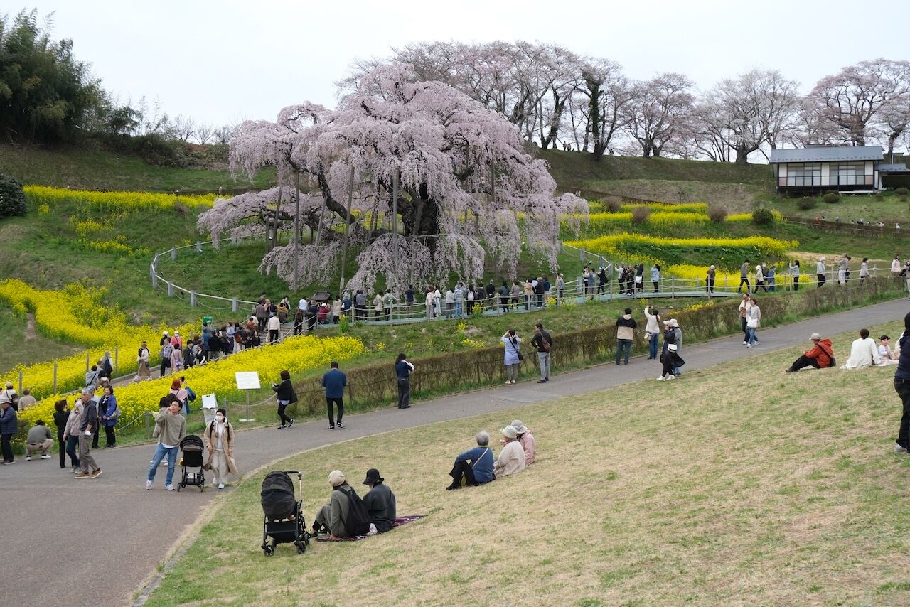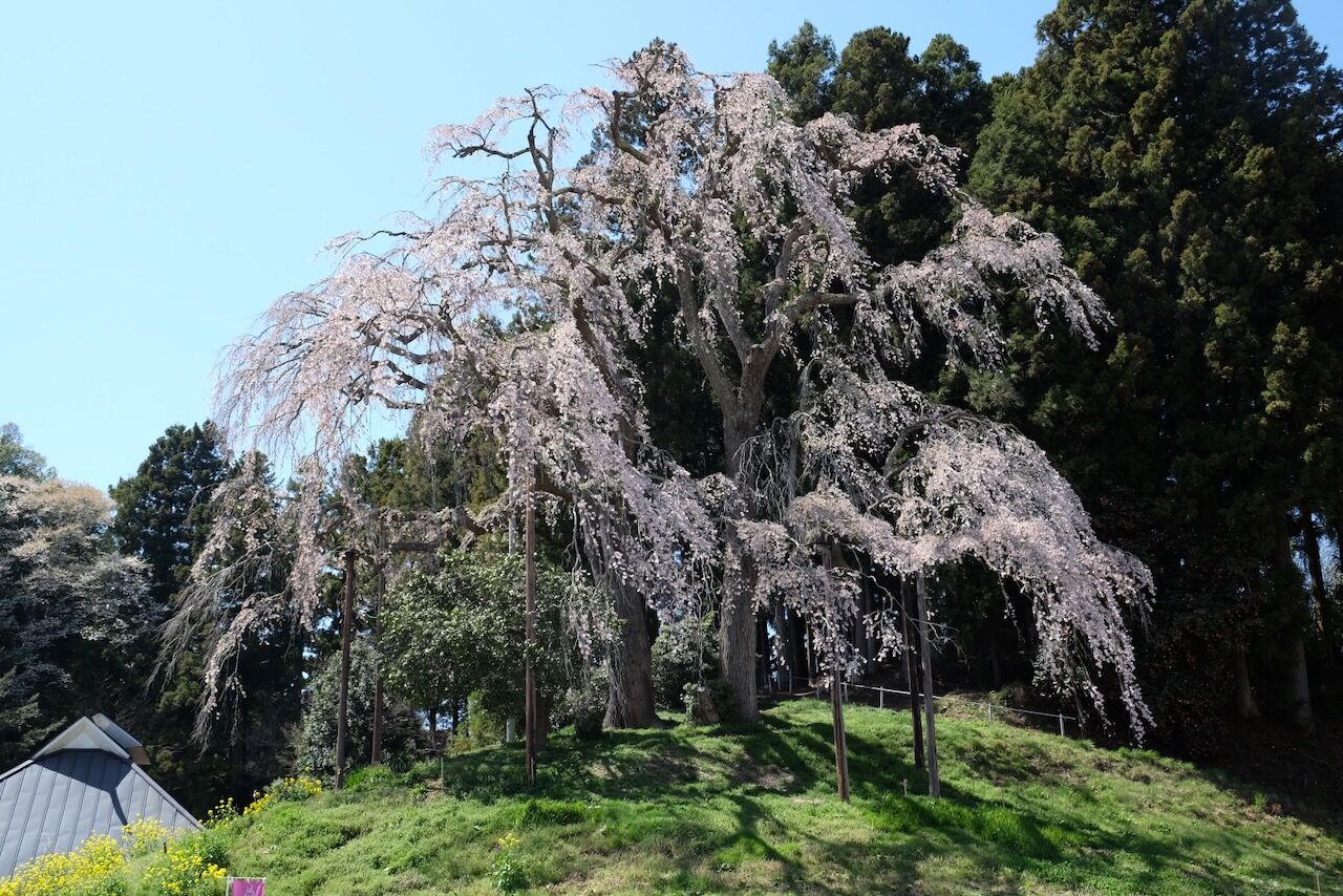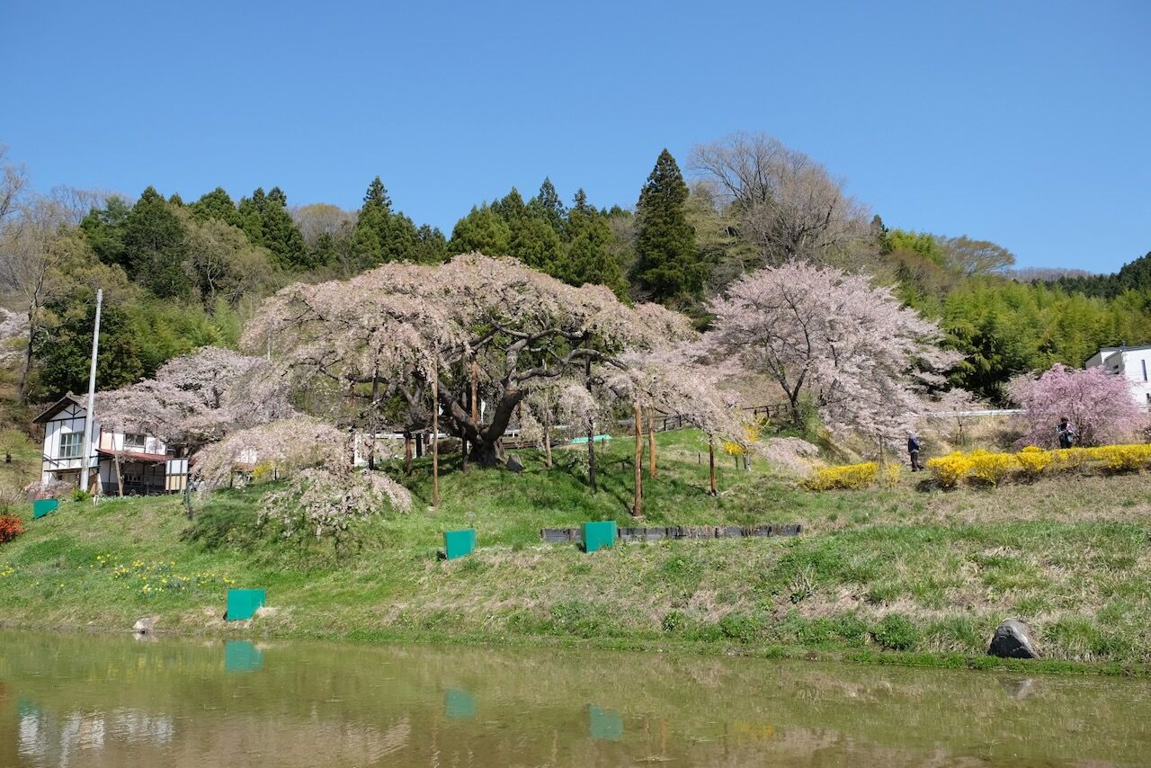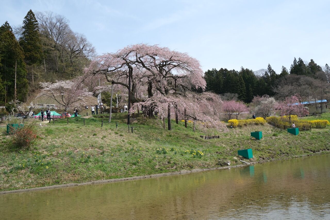 三春の滝桜よりおすすめの合戦場のしだれ桜でしたが、まだまだ2分咲きくらいでした